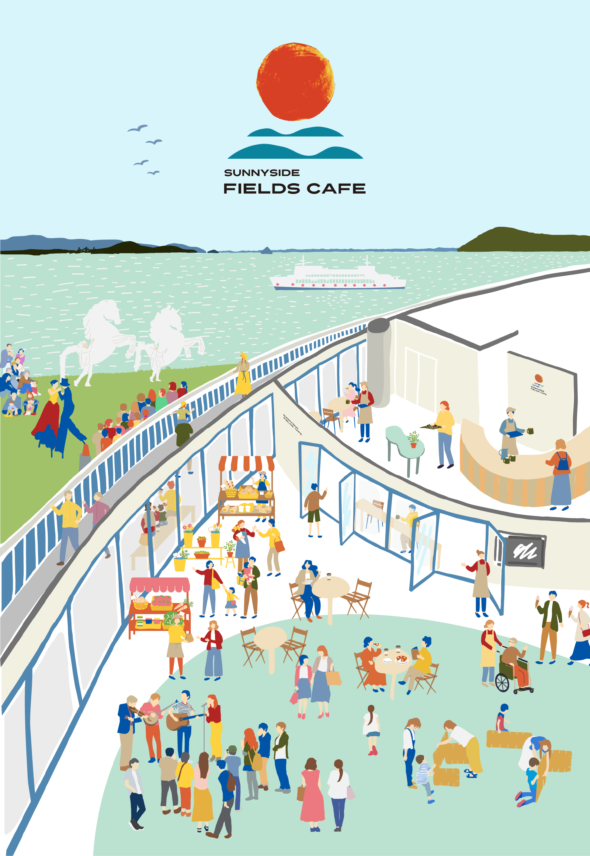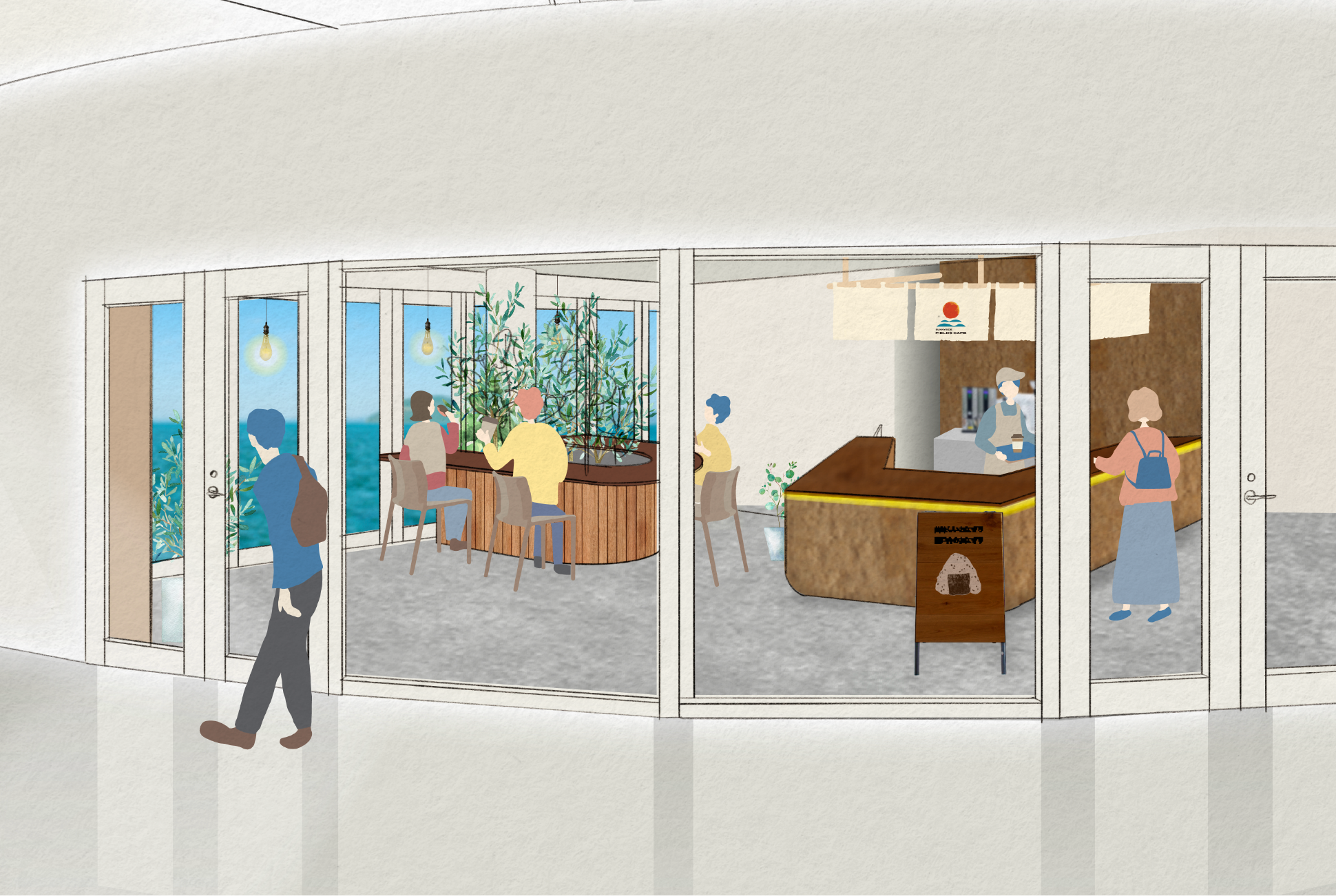 アリーナに訪れた国内外の来訪者にSUNNYSIDE FIELDS CAFE特製のコーヒーやお弁当でまた帰ってきたいと感じていただけるようなあたたかなおもてなしを提供します。せっかく香川へいらした方々に、食や文化、人のぬくもりなど地元の宝物を感じていただく接点となり少しでもくつろいで香川時間を楽しんでいただける場所を目指します。
